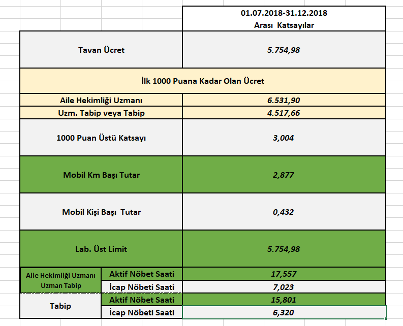 2018 Temmuz Maaş Zammı Sonrası Hesaplama Katsayıları.